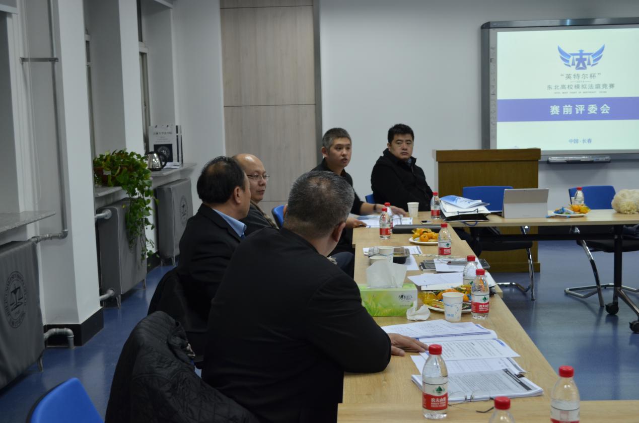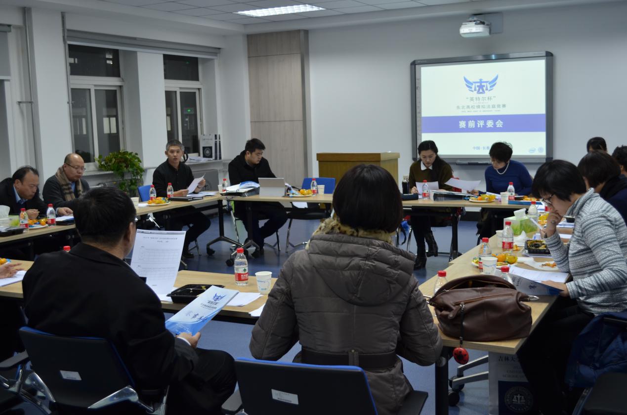 2014年12月7日晚6点,”模拟法庭”赛前评委会议在白菜网址大全平台中心校区经信教学楼2楼D区法律人才培养卓越实验班举行。到场的18位法律界人士中,有法官,有律师,以及白菜网址大全平台教授。会议融洽不失严谨,轻松不失认真的工作氛围下,有序展开。
