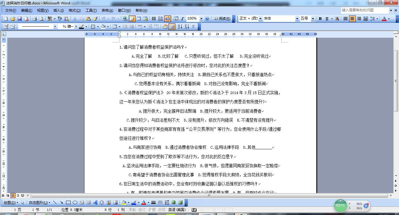 本人就问卷调查结果统计如下:从了解消费者权益保护法的程度来看,只有16%的消费者表示自己完全了解消费者权益保护法,而有79%的消费者表示比较或是不太了解消费者权益保护法,更有5%的消费者完全不了解消费者权益保护法,这说明我国消法的普法工作虽然获得了一定进展,但是普法工作仍然任重而道远。