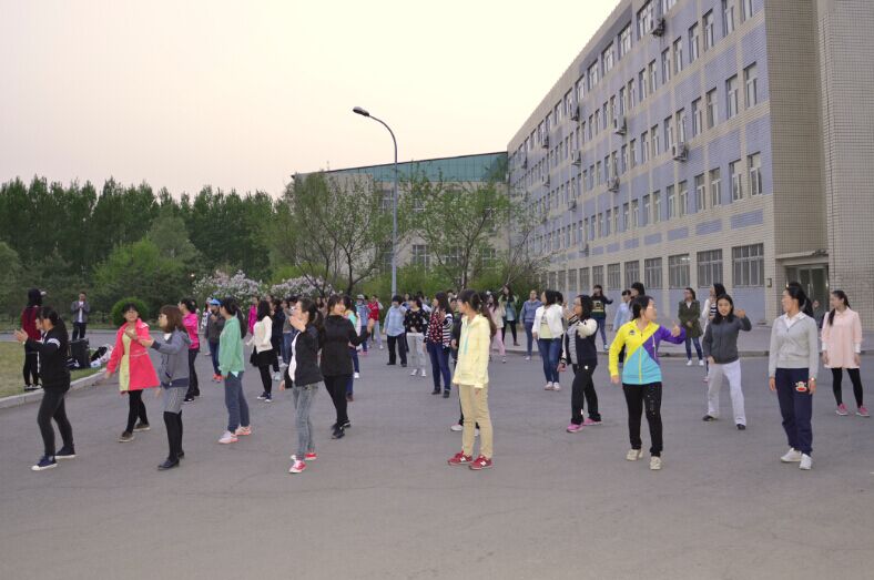 2015年5月4日晚上6点整,在和煦的春风中,002cc白菜资讯2013级女生在经信教学楼楼下展开了运动会集体项目之一太极拳的第一次排练。