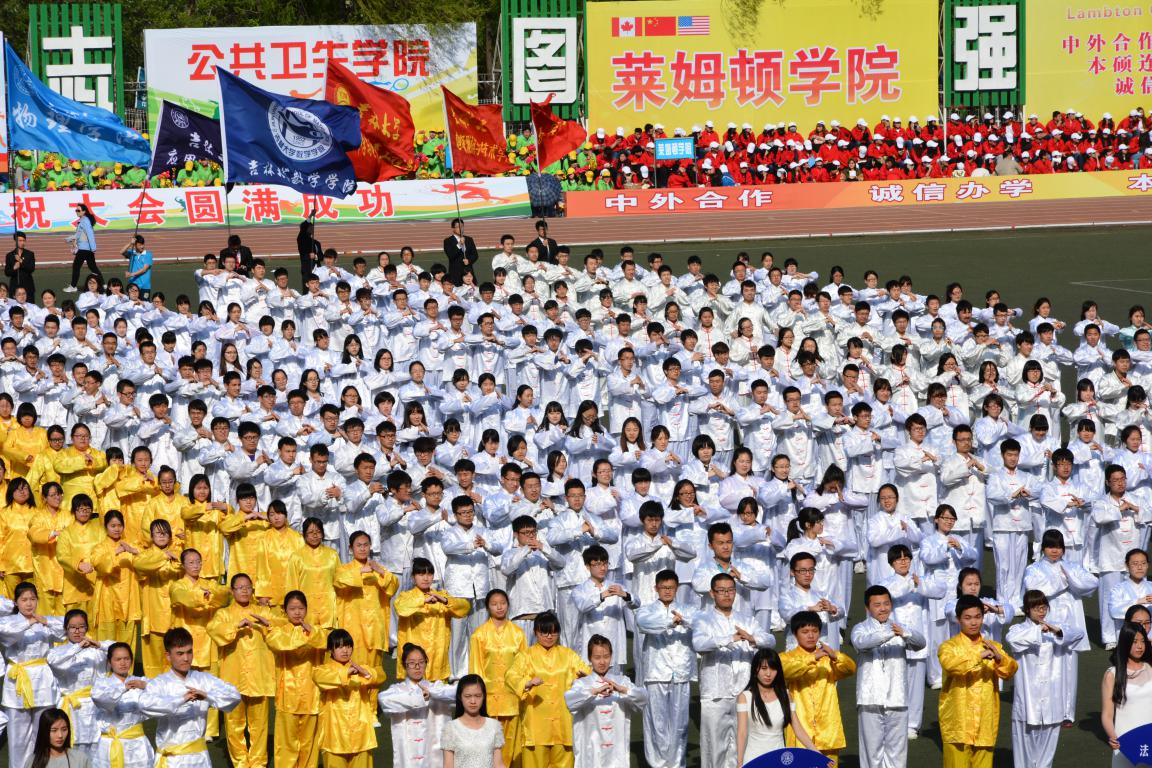 比赛继续进行。下午三时许,各项田径项目比赛基本已全部结束,在观看完力量与速度的比拼后,体育场上出现了新鲜元素——太极拳集体项目,着实令人耳目一新。来自各个学院的太极拳队伍聚集在体育场,场面极其壮观。太极拳以中国传统民乐“茉莉花”为背景音乐,与太极拳的柔和之美相映成趣,使人感到非同一般的典雅。在场的师生们纷纷拍手称赞,外国友人们更是赞不绝口。太极拳蕴含着中国古老的智慧,更彰显着青春的活力,002cc白菜资讯太极队伍将之表现得尤为淋漓尽致。